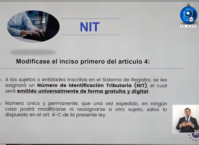 Se indica en la reforma que a los sujetos o entidades inscritas en el Sistema de Registro, se les asignará un NIT, «el cual será emitido universalmente de forma gratuita y digital».