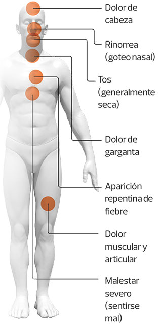 La “súper gripe” suele comenzar alrededor de dos días después de haber tenido contacto con una persona infectada, a través de gotas respiratorias al toser, hablar o estornudar. Los síntomas incluyen: